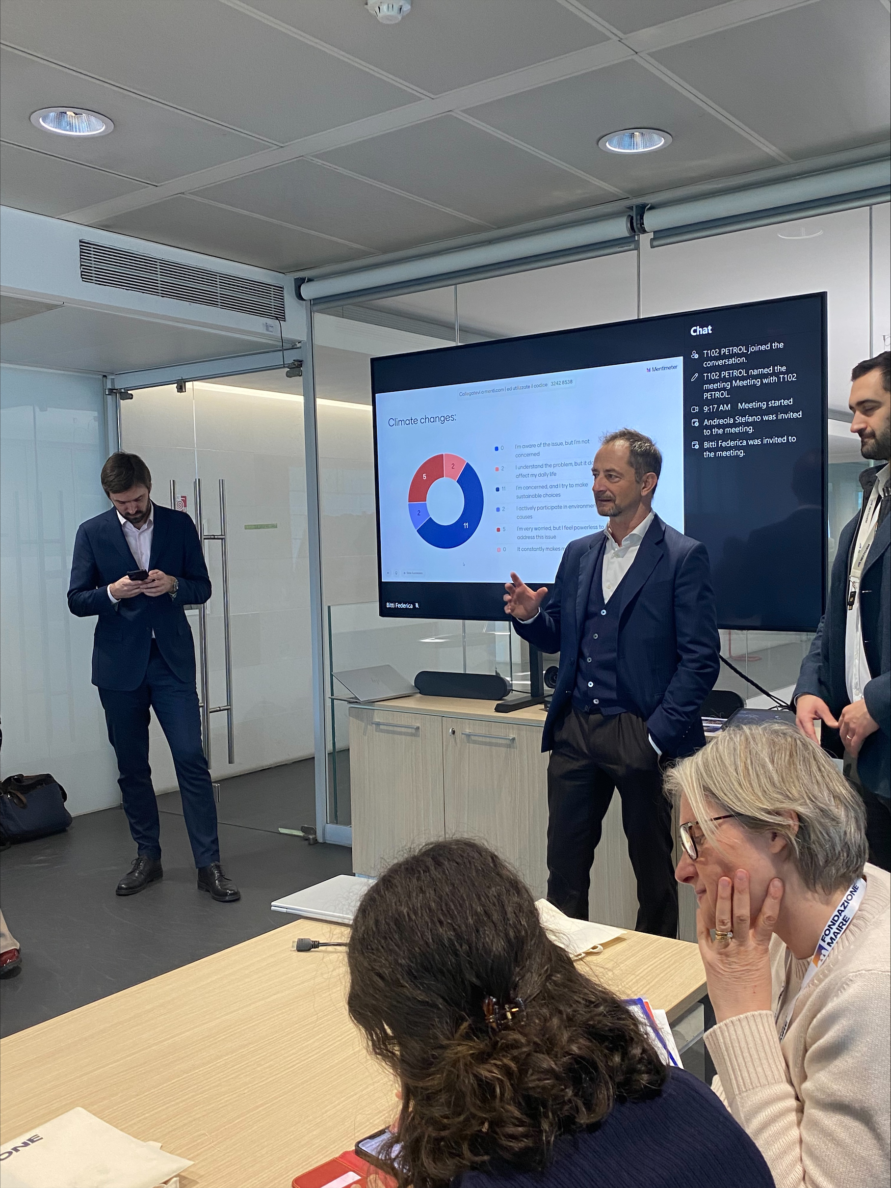 Nel corso della mattinata abbiamo messo “sotto accusa” (con la dinamica del dibattito) la possibilità stessa della transizione energetica, attraverso un dialogo strutturato come un vero processo. Le tecnologie su cui i colleghi MAIRE lavorano ogni giorno – i carburanti sostenibili (“SAF”, Sustainable Aviation Fuels), i sistemi di cattura della CO2 (“carbon capture”), il metanolo, l’idrogeno – sono diventati il terreno di gioco per muoversi tra evidenze, miti, fake news e scelte possibili.