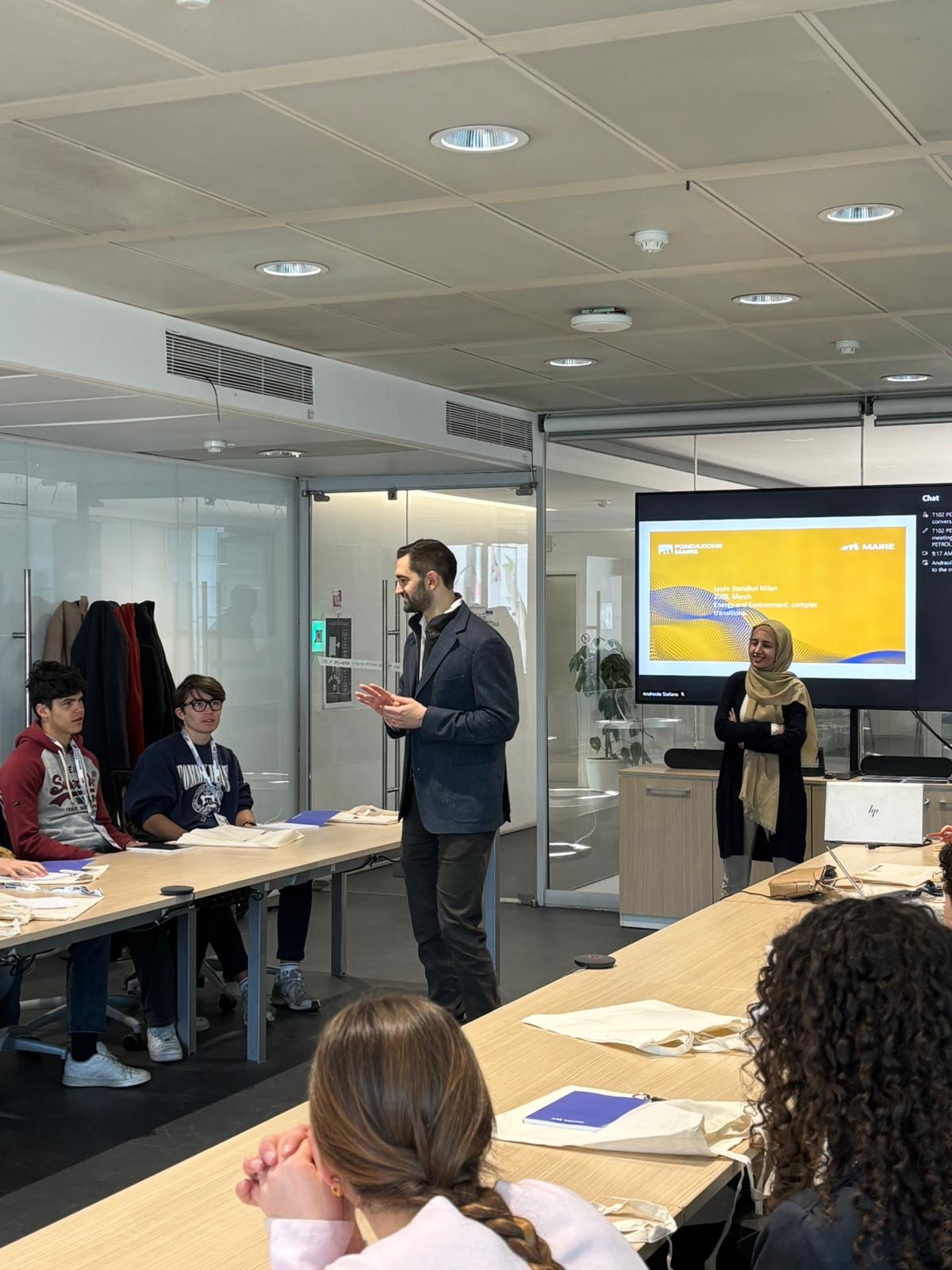 Esploratori della transizione energetica per un giorno, questa l’esperienza vissuta da 19 degli studenti delle classi III, IV e V superiore del Liceo francese Stendhal di Milano, nostri ospiti il 24 marzo 2026 presso le Torri Garibaldi di Milano (sede del Gruppo MAIRE) per una mattinata di formazione all’insegna della complessità, resa semplice.